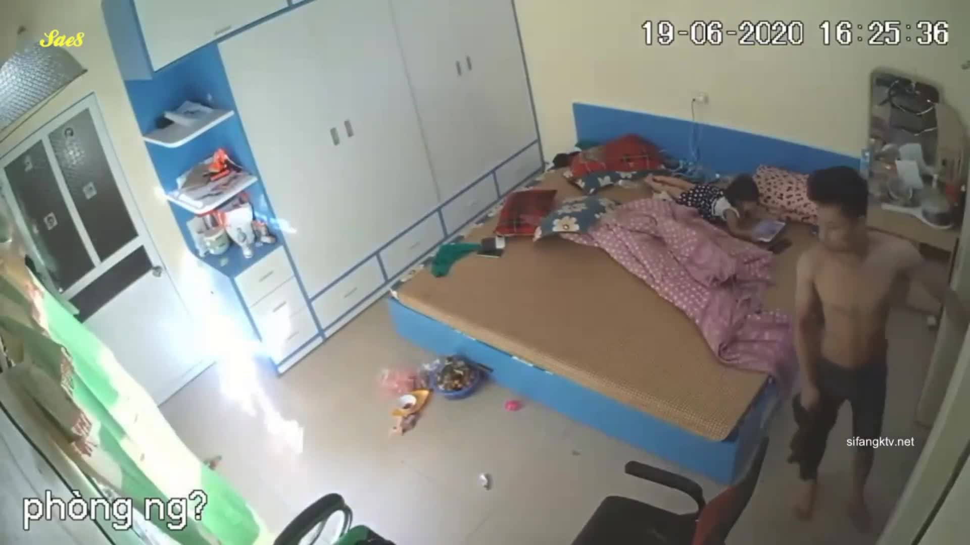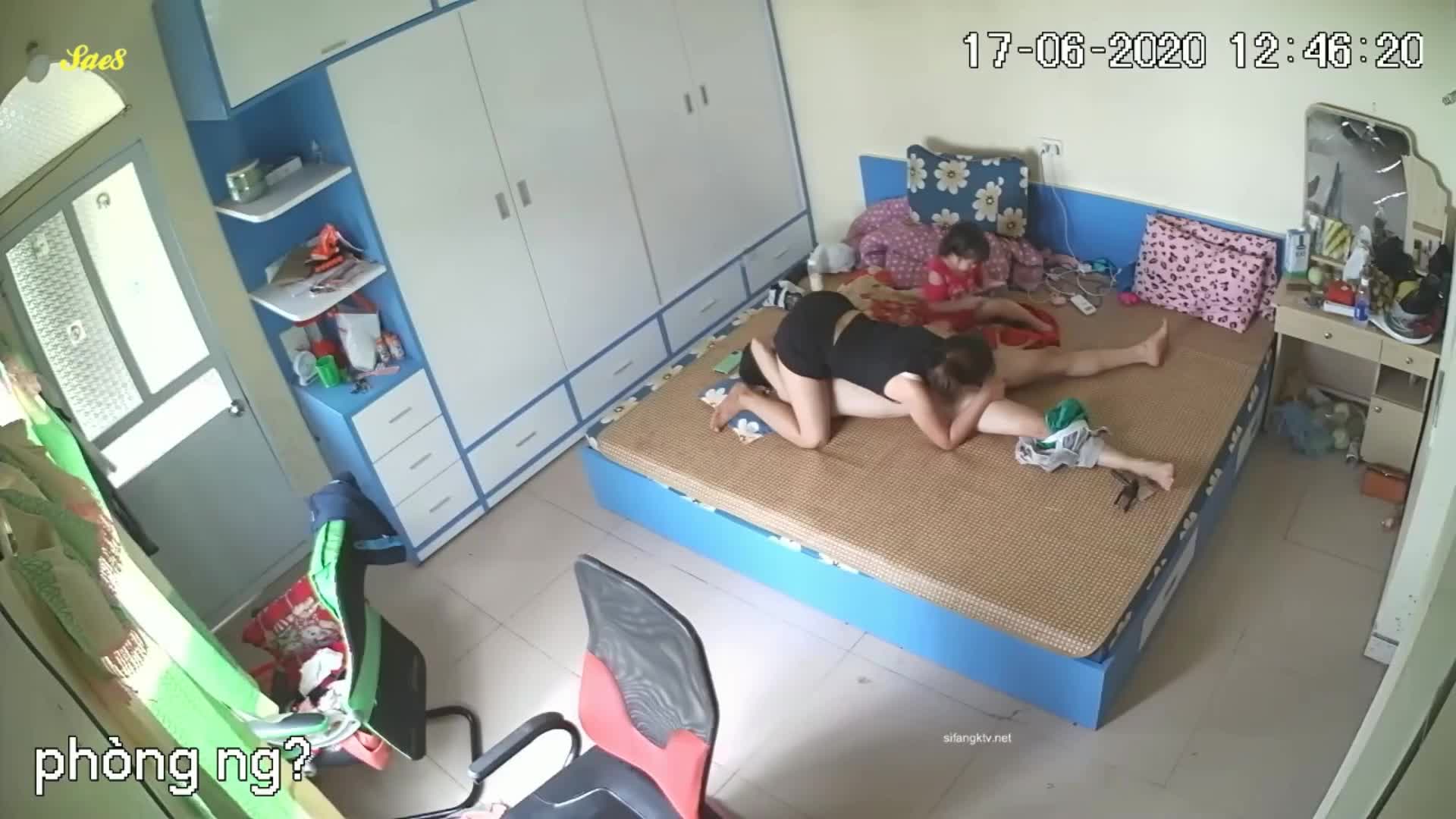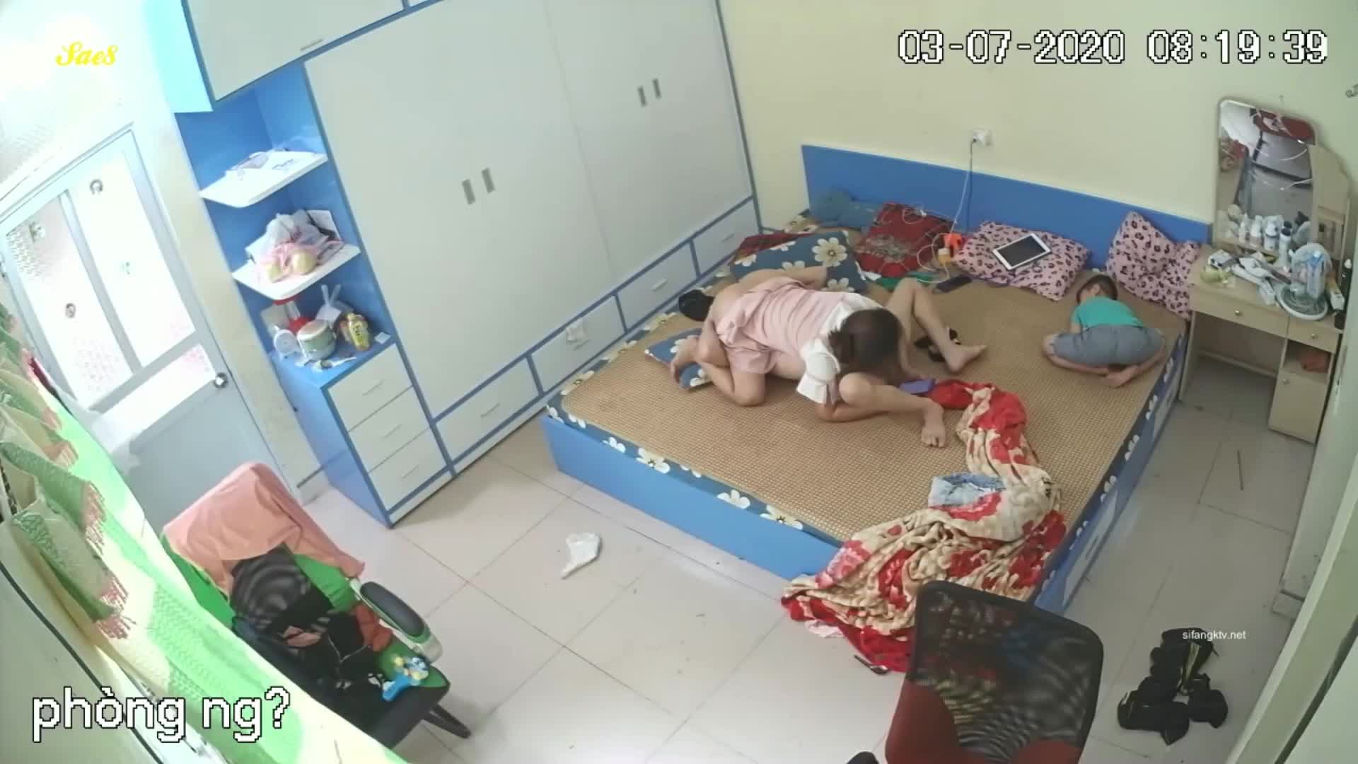 家庭摄像头偷拍性欲很强的夫妻,男的鸡巴很大女的很骚睡在一起就想做爱,小孩在旁边似懂非懂的观战...